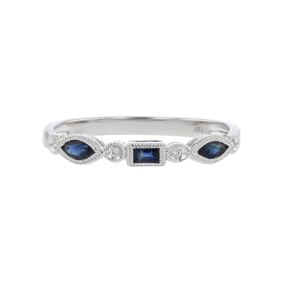 0.015ct Full Cut Diamonds VS and 0.26ct Blue Sapphire Band in 14k White Gold