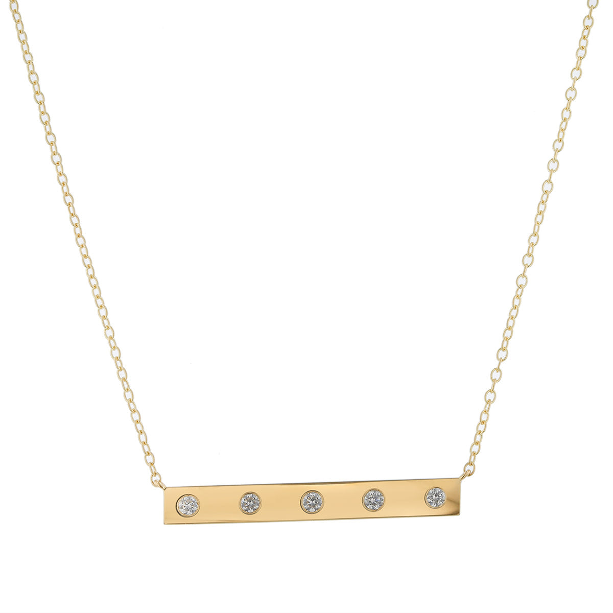 Bar necklace in 18K yellow gold set with 0.14ct diamond on a 16 inch chain.