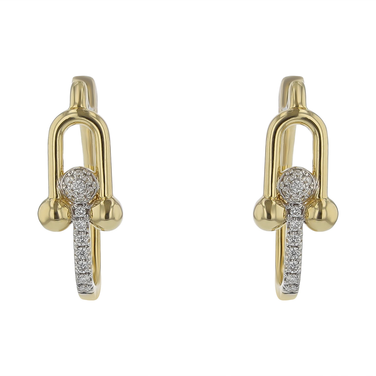 These 0.14ct diamond prong set hoop earrings in 14K yellow gold feature delicate diamonds that add a touch of sparkle to a classic hoop design.