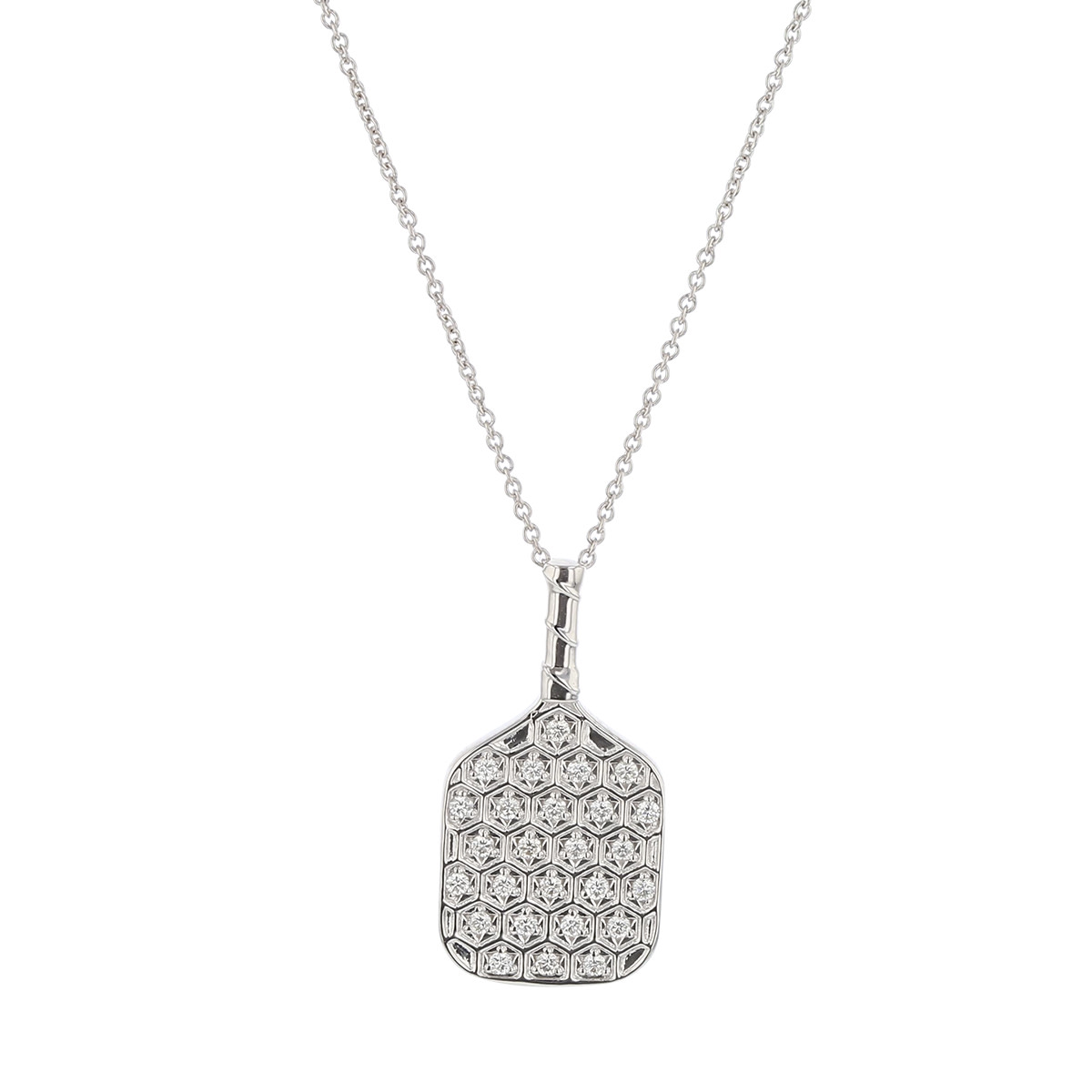 0.21Ct Diamond Pickle Ball Racket Pendant on Chain in 18k White Gold, 18" chain
