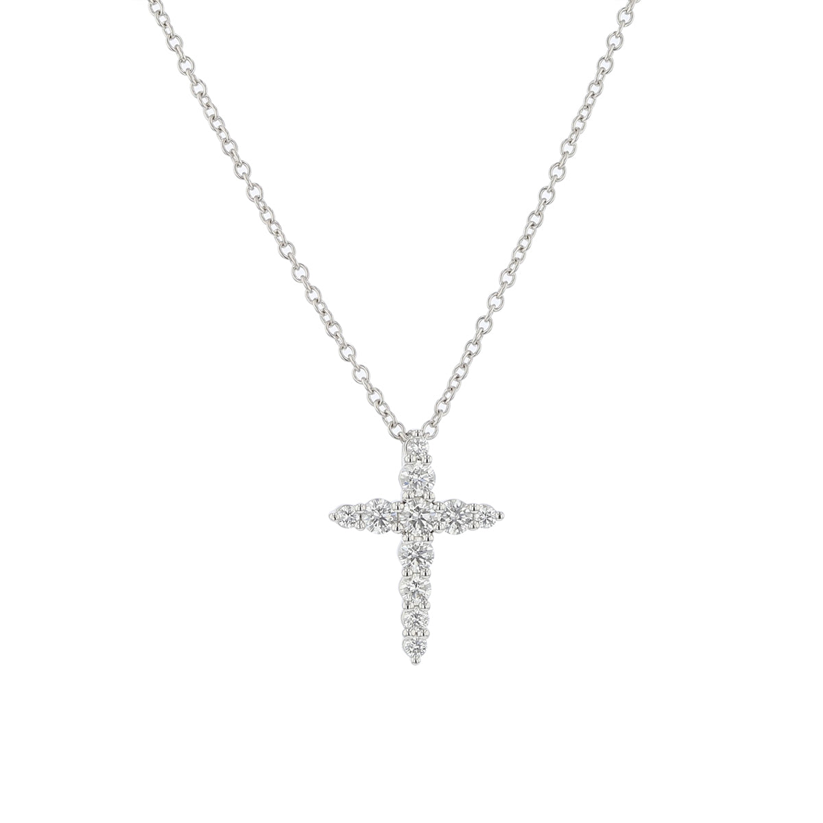 0.36-0.42Ct Graduated Diamond Cross Pendant in 18K White Gold, 18"