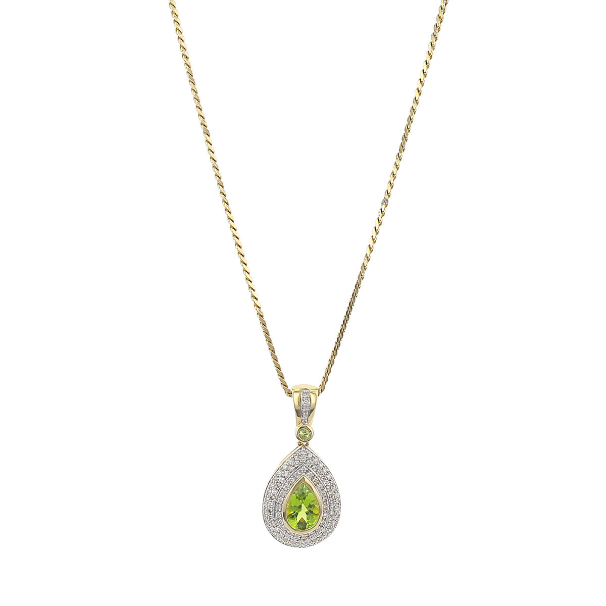 14K Gold Pear Shape Peridot and Diamond Halo Pendant