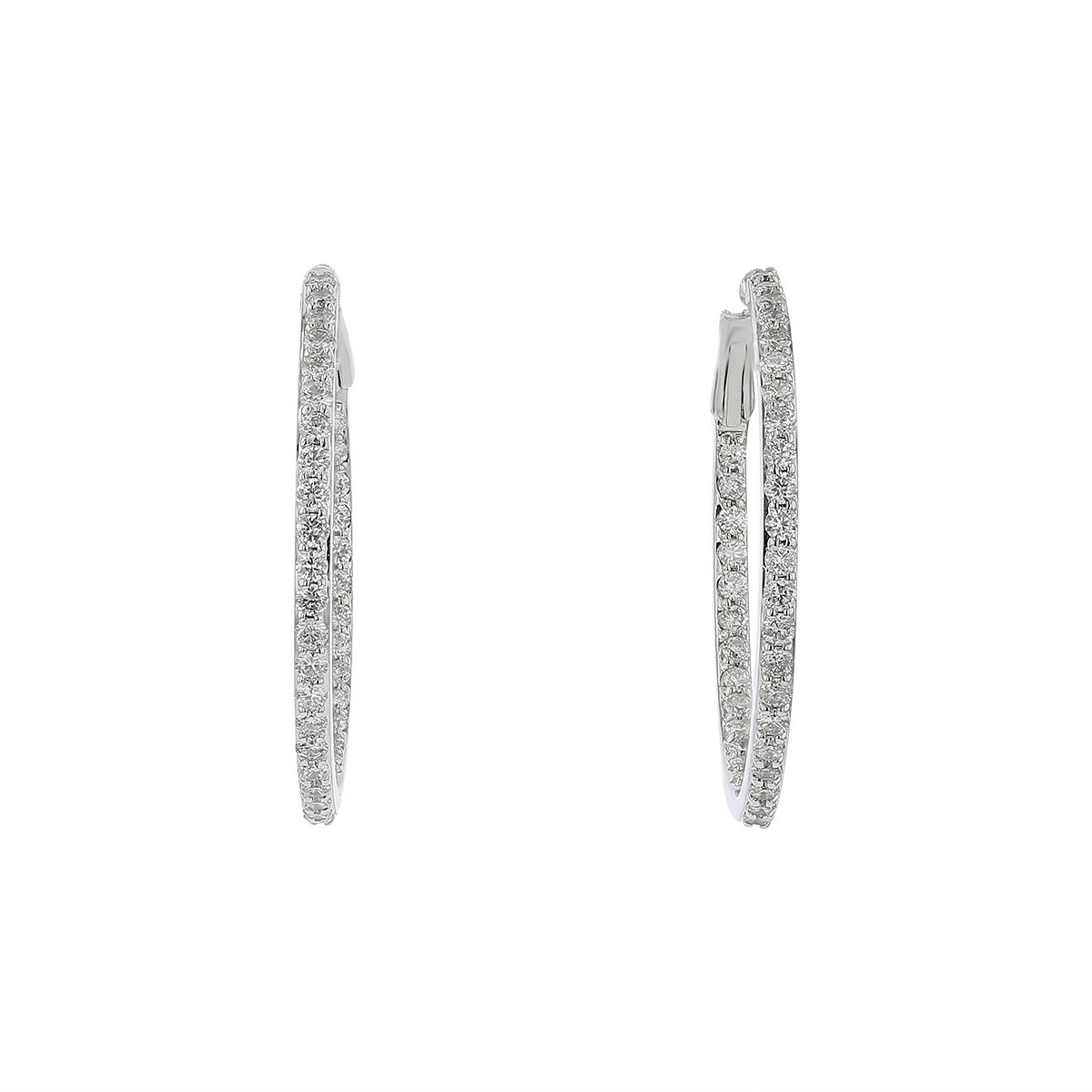 14K White Gold Diamond Inside Out Hoop Earrings