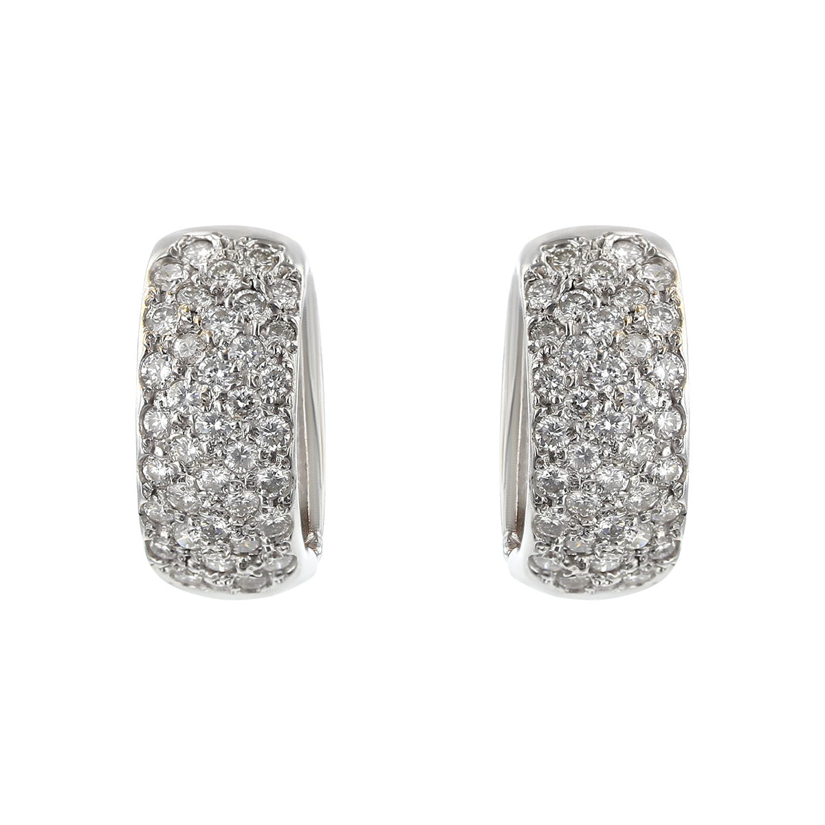 14K White Gold Pave Diamond Huggie Hoop Earrings