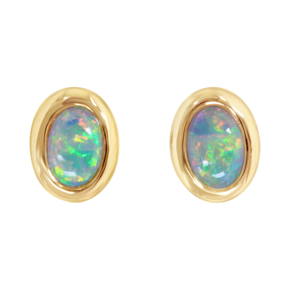14K Yellow Gold Australian Opal Stud Earrings