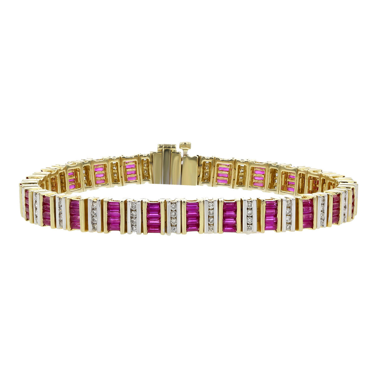 14K Yellow Gold Burma Ruby and Diamond Bracelet