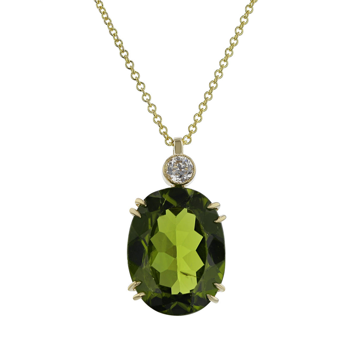 14K Yellow Gold Peridot and Diamond Pendant Necklace