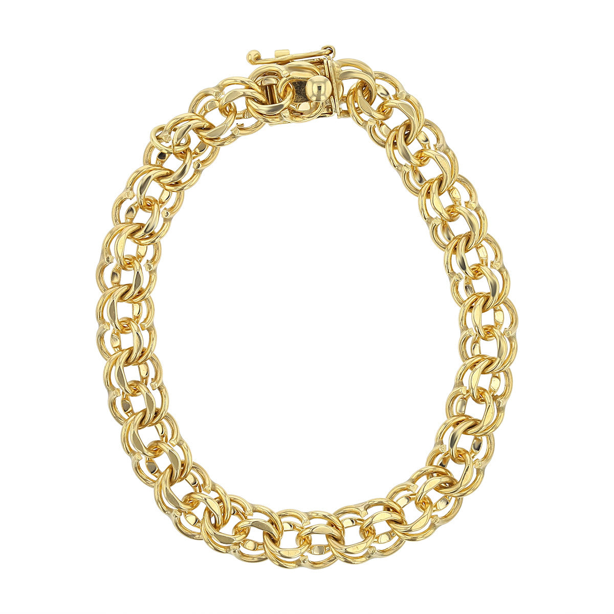 14K Yellow Gold Wide Double Fancy Link Bracelet