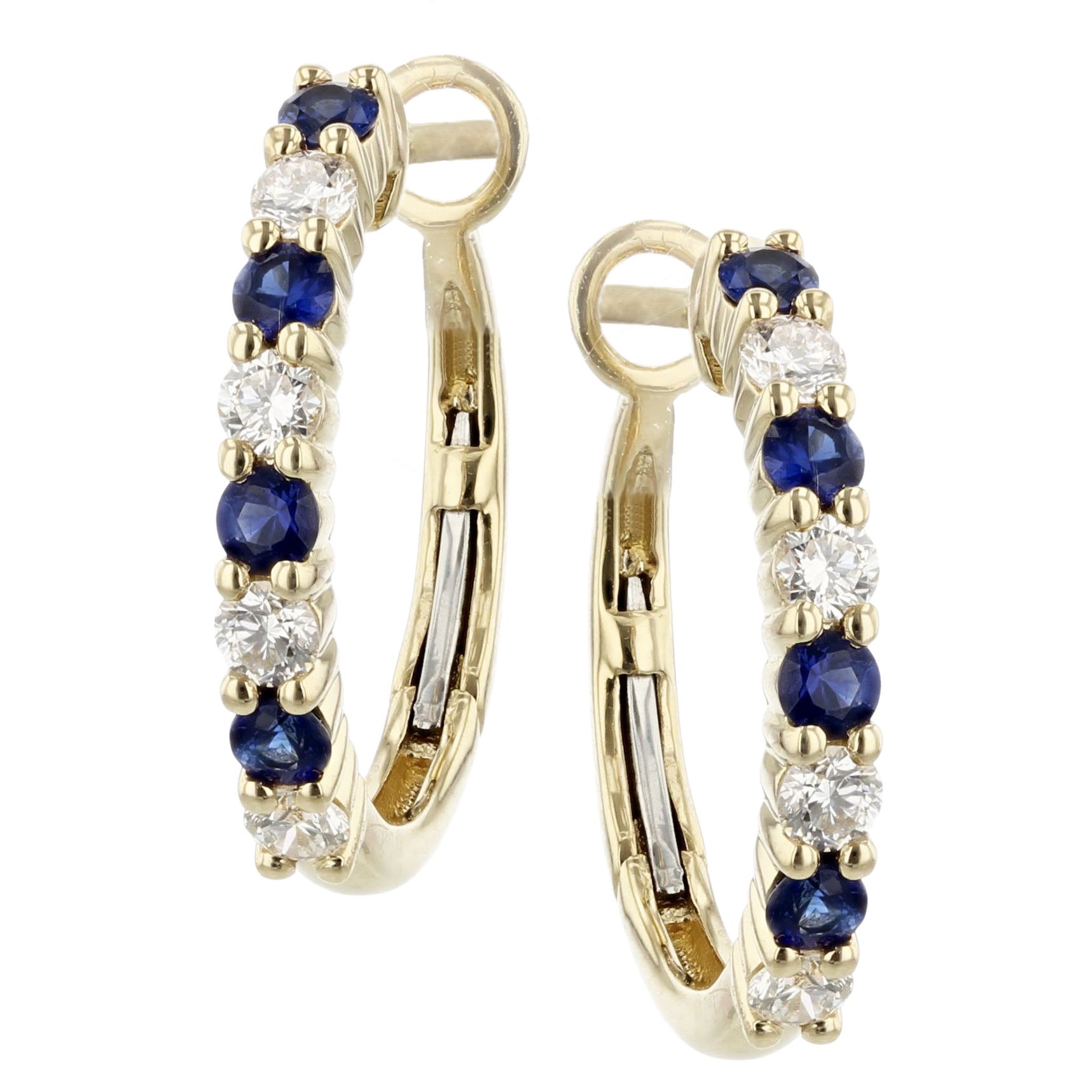 0.40ct Diamonds and 0.64ct Sapphire alternating shared prong hoop earrings in 14k Yellow Gold
