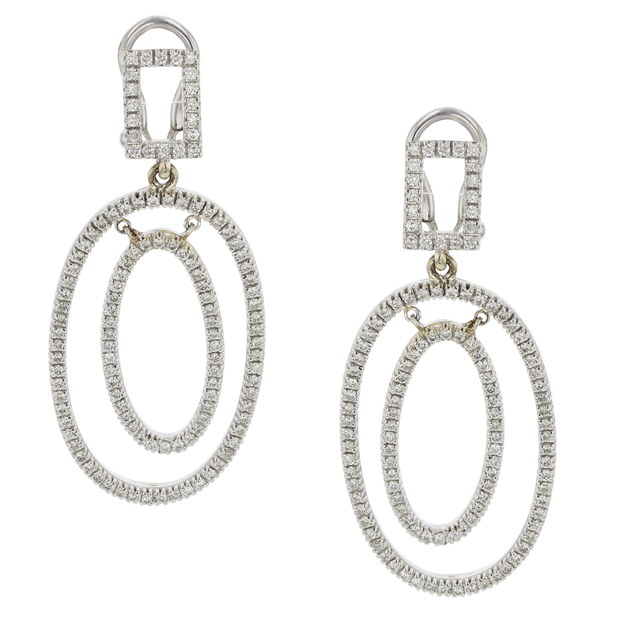 18K white gold oval drop earrings adorned with 1.65 carat diamonds. Add sophistication and timeless elegance to any outfit and make a statement with these exquisite earrings.