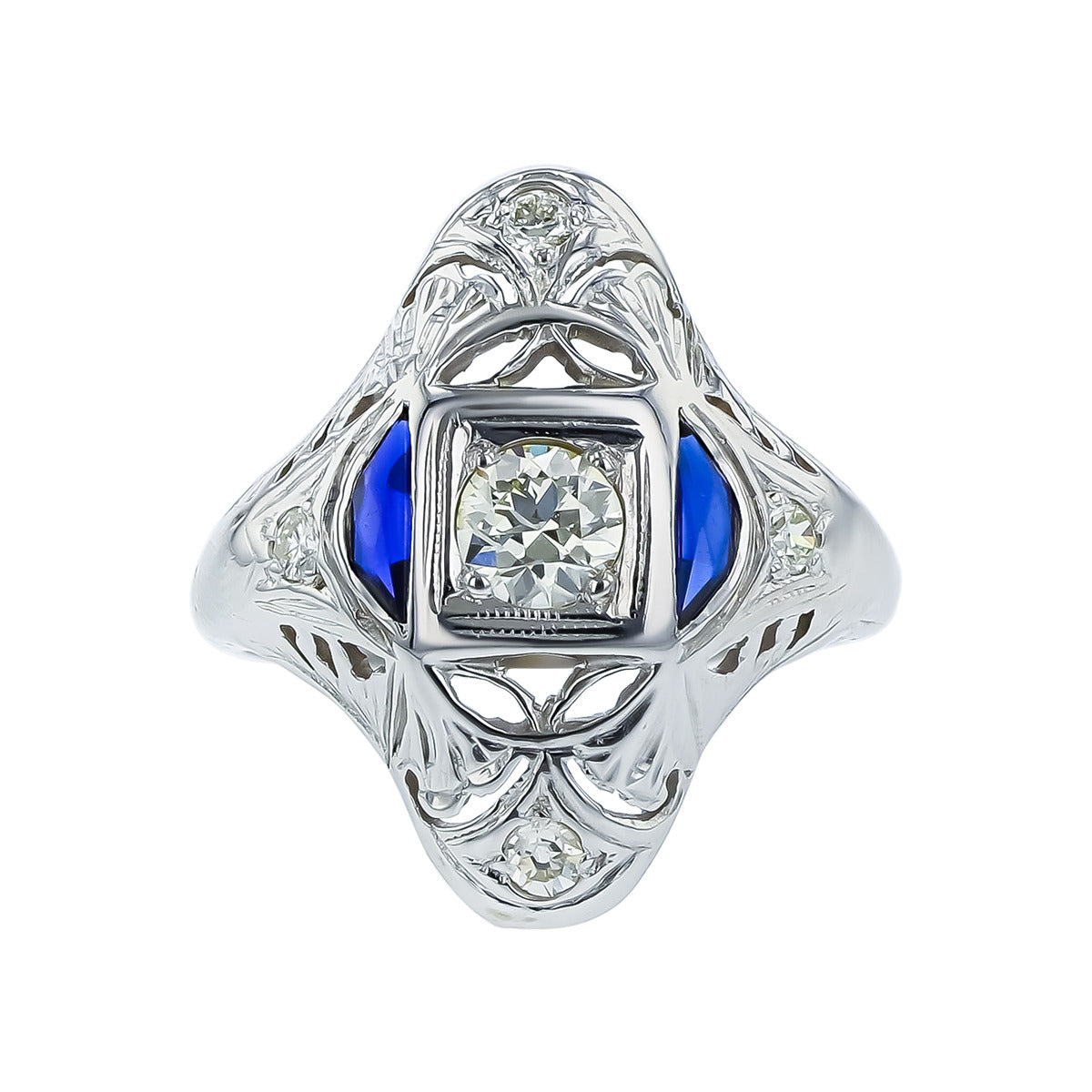 Art Deco 18K White Gold Diamond and Sapphire Ring