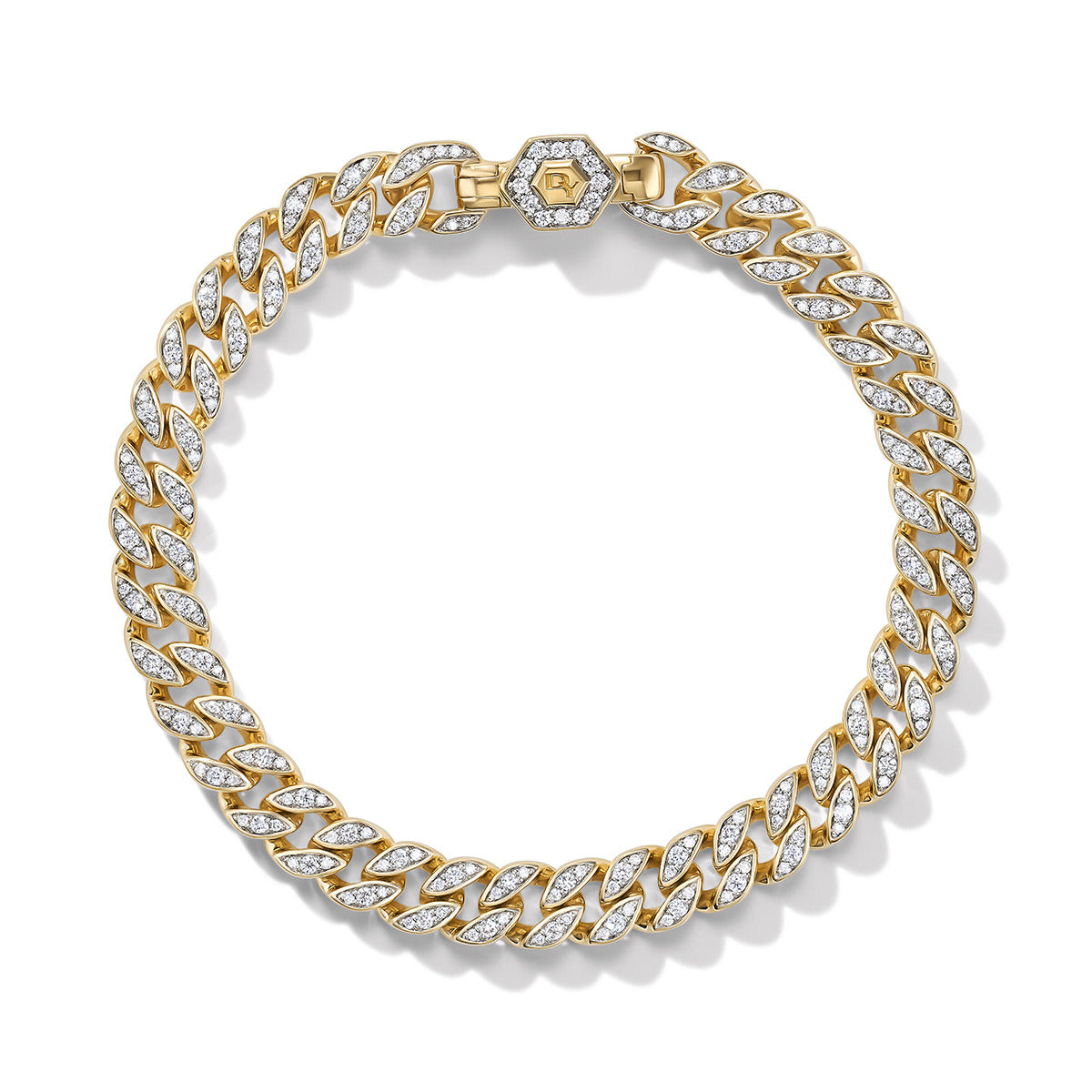 Curb Chain Bracelet in 18K Yellow Gold with Pave Diamonds