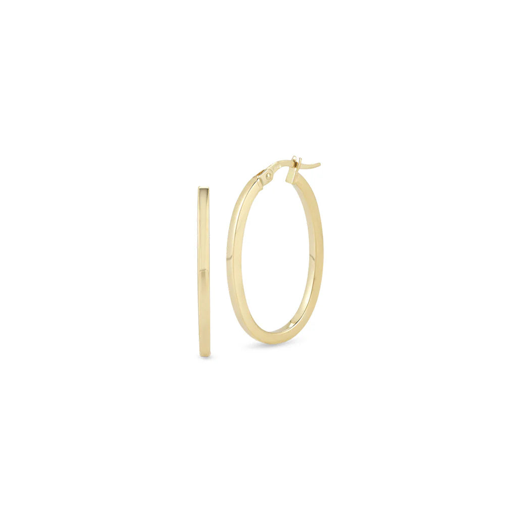 The Designer Gold small oval hoop earrings are crafted in 18K yellow gold, offering a sleek and elegant design.