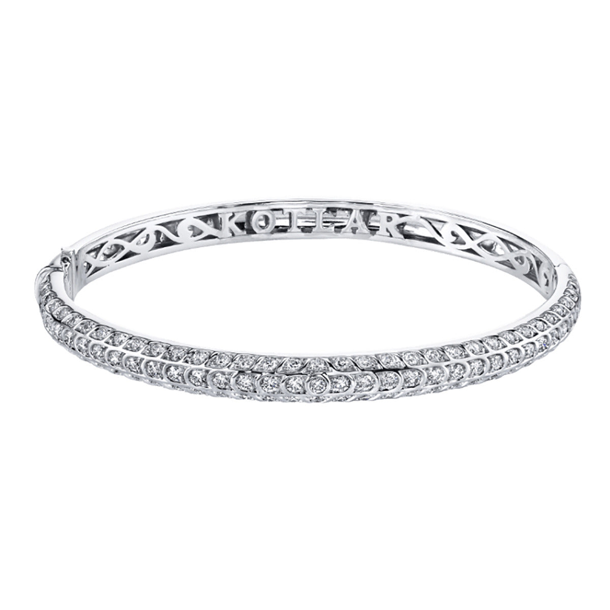 Crafted from 18k white gold and adorned with a dazzling 2.0 total carat weight of G color diamonds, the Halfway Artisan Pave Diamond Bangle is a stunning masterpiece. An expertly designed piece from our Artisan Pave collection, this bangle is both luxurious and elegant.