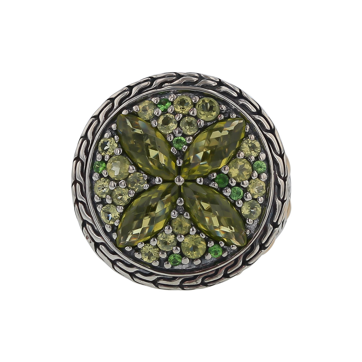 John Hardy Batu Peridot and Tsavorite Garnet Ring Sterling Silver Size 8