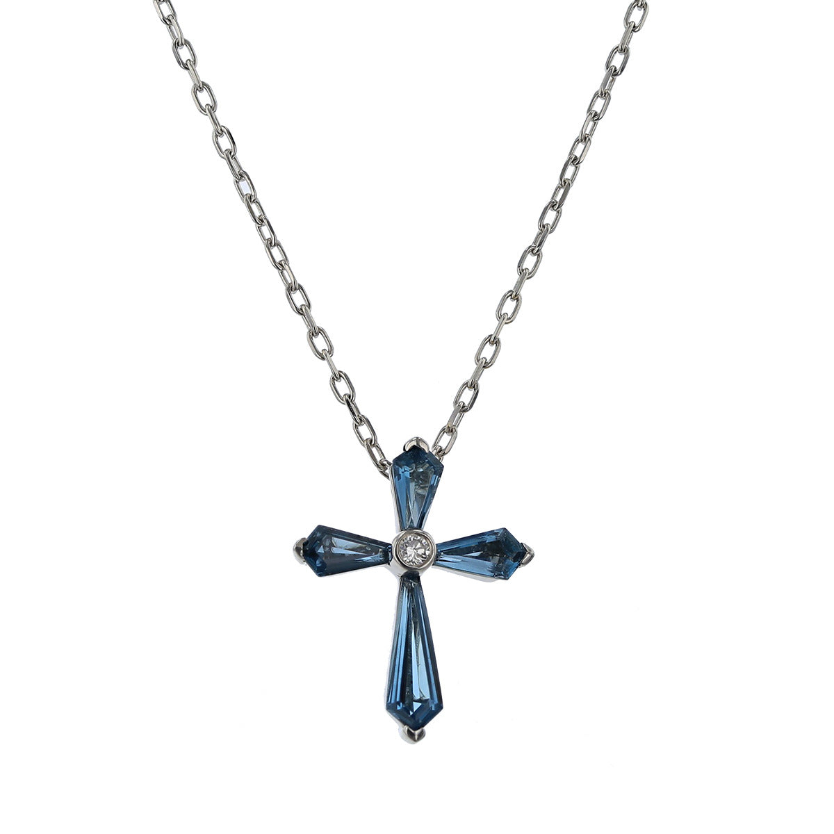 London Blue Topaz and Diamond Cross Pendant Necklace