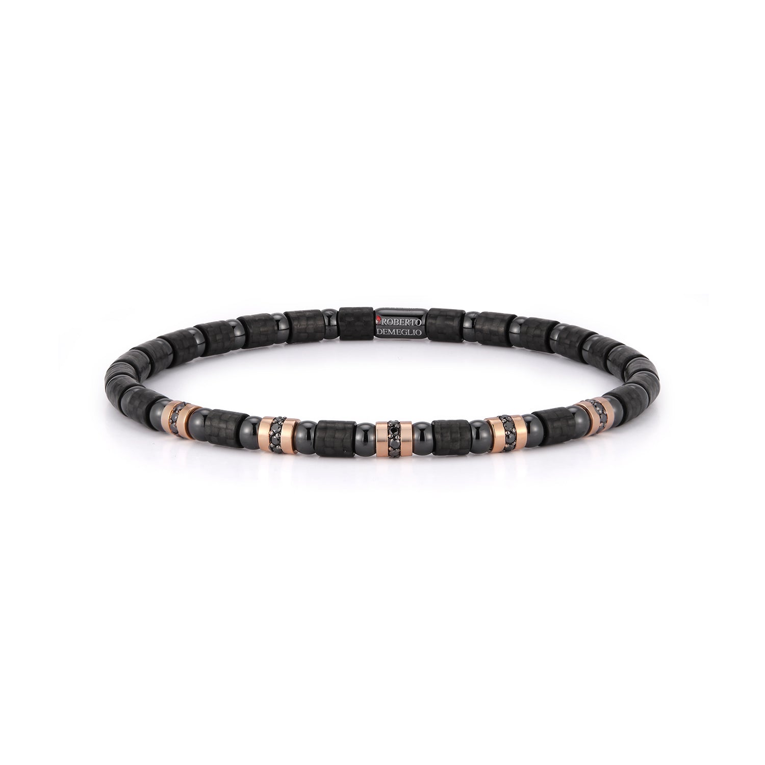 This men's bracelet features five sections of 0.40 carat black diamonds set in 18K yellow gold and carbon fiber. The perfect combination of luxury and durability, this bracelet is a statement piece for any occasion.