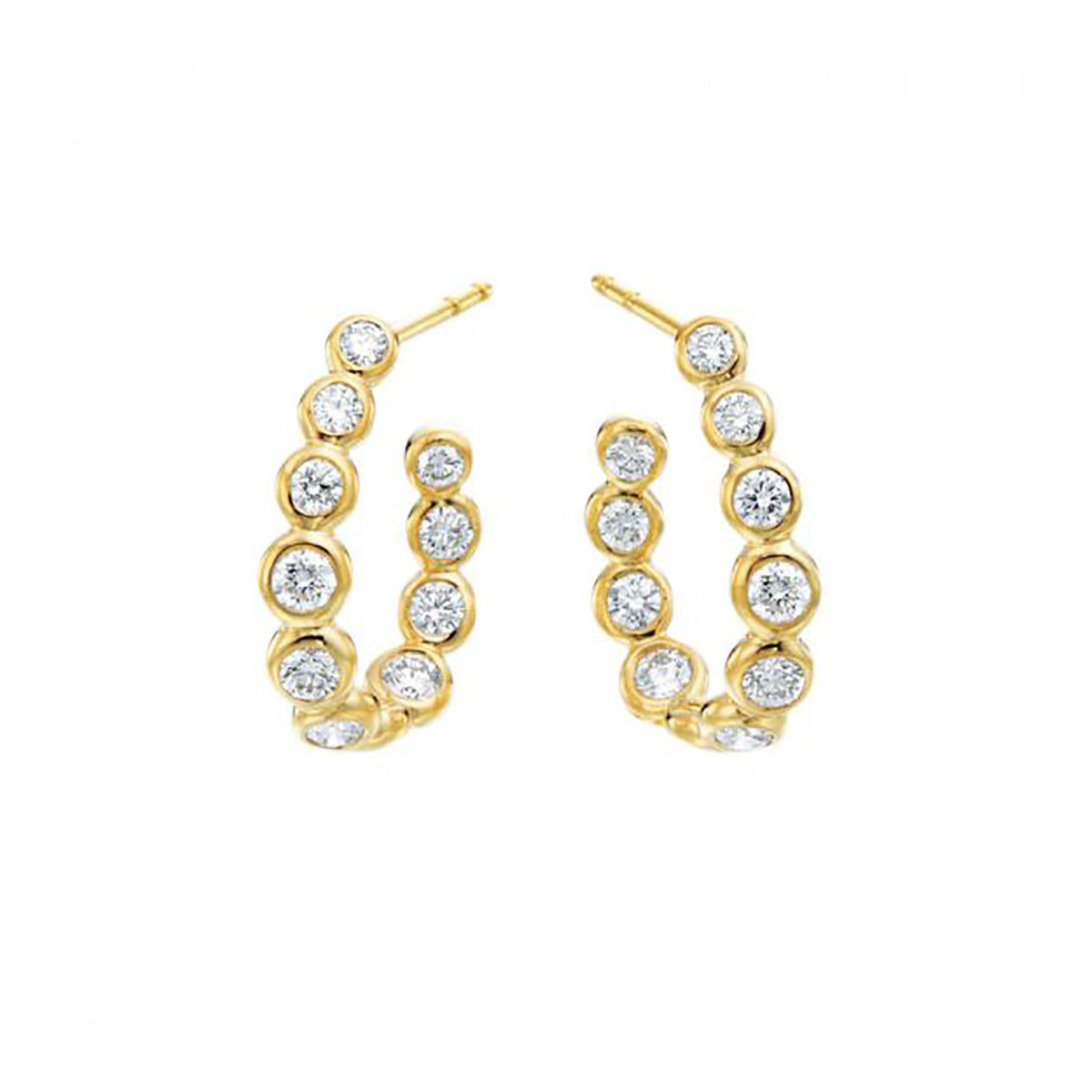 Crafted from stunning 18k yellow gold, these Moonlight C-Curved Hoop Earrings feature a dazzling diamond with a total carat weight of 1.12. The primary gemstone stone is a brilliant H-I color, adding a touch of radiance to your collection.