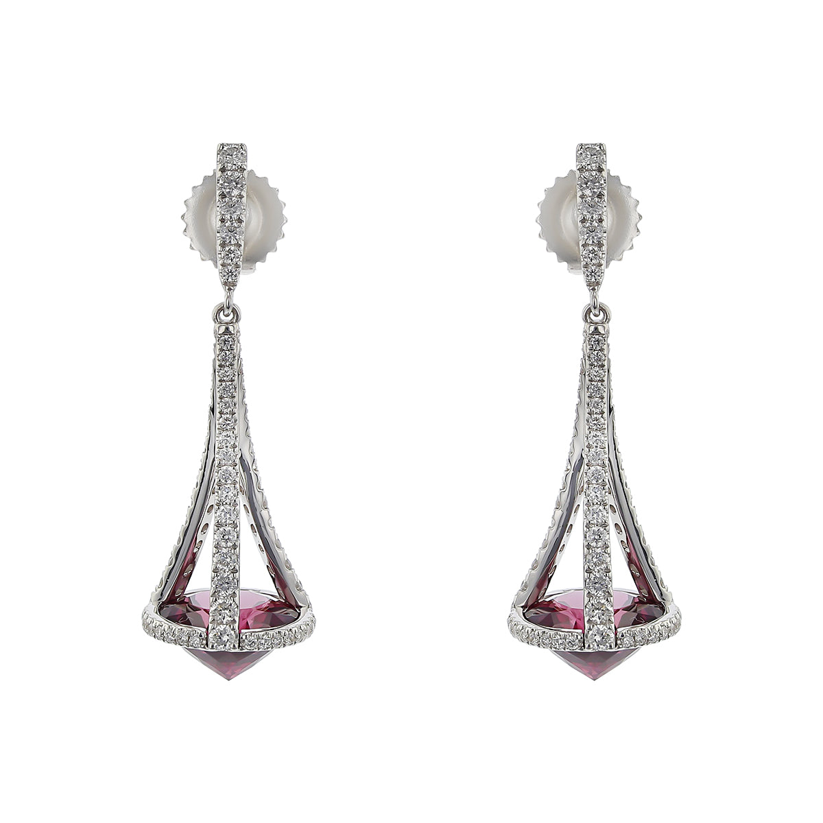 Pastel Diamond Chandelier Garnet Drop Earrings