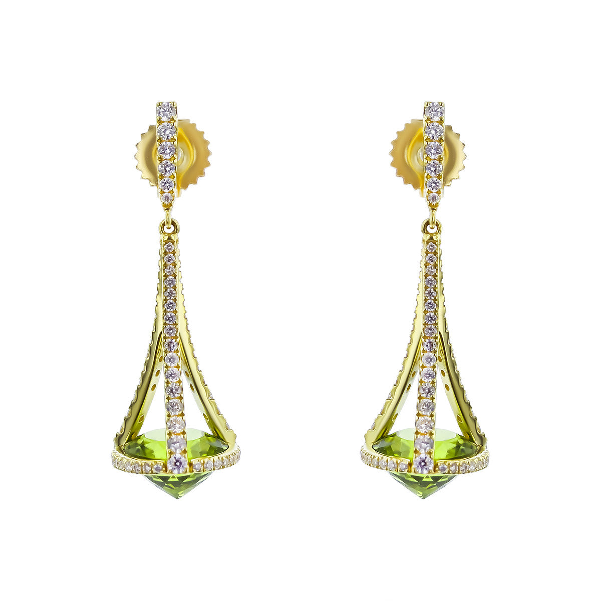 Pastel Diamond Chandelier Peridot Drop Earrings