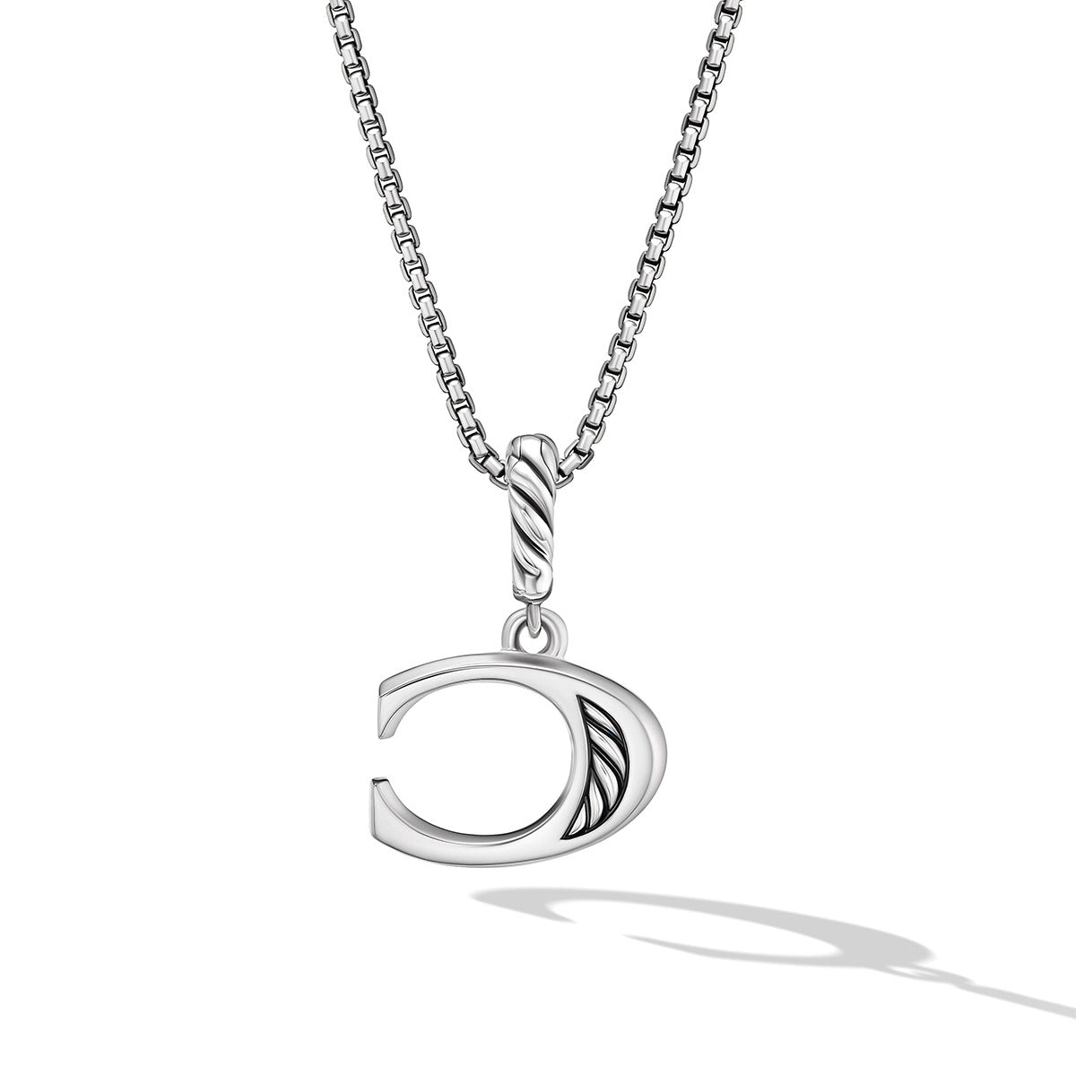 Pave Initial Pendant Necklace in Sterling Silver with Diamond C