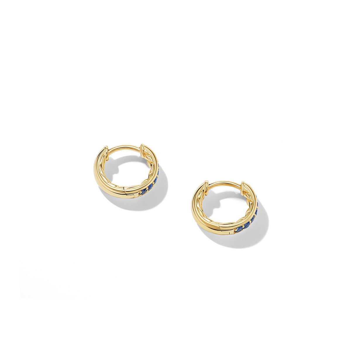 Petite Pave Huggie Hoop Earrings in 18K Yellow Gold with Blue Sapphires