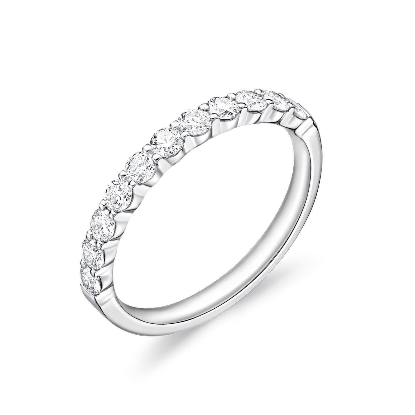 This Petite Prong Band is crafted from Platinum and features 0.48-0.56ct GH/SI Diamonds. Ring Size: 6.5.
