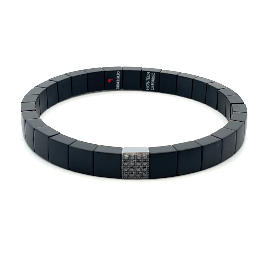 Scacco Men's 0.18ct Black Diamond Matte Stretch Bracelet in Ceramic and 18K White Gold Size Large