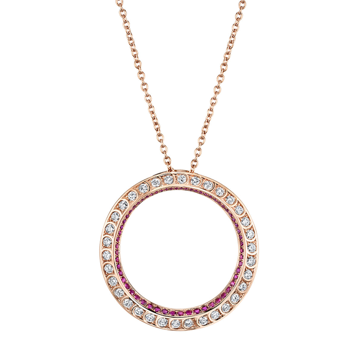 Scallop Artisan Pave Diamond and Ruby Medallion Pendant
