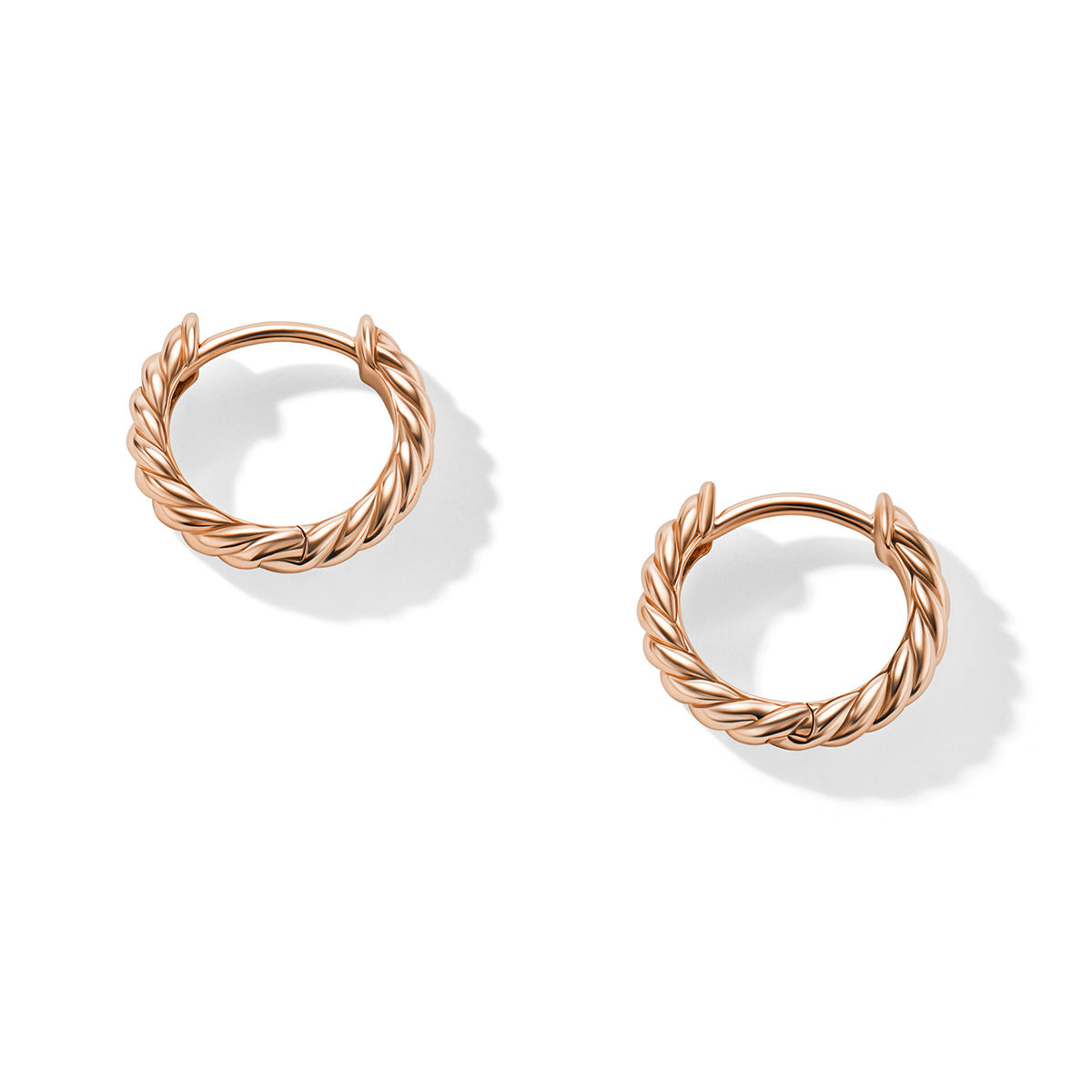 Sculpted Cable Huggie Hoop Earrings in 18K Rose Gold
