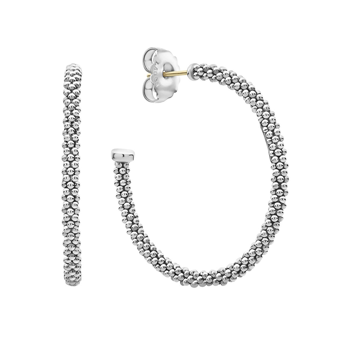 Signature Caviar Large Beaded Hoop Earrings in Sterling Silver