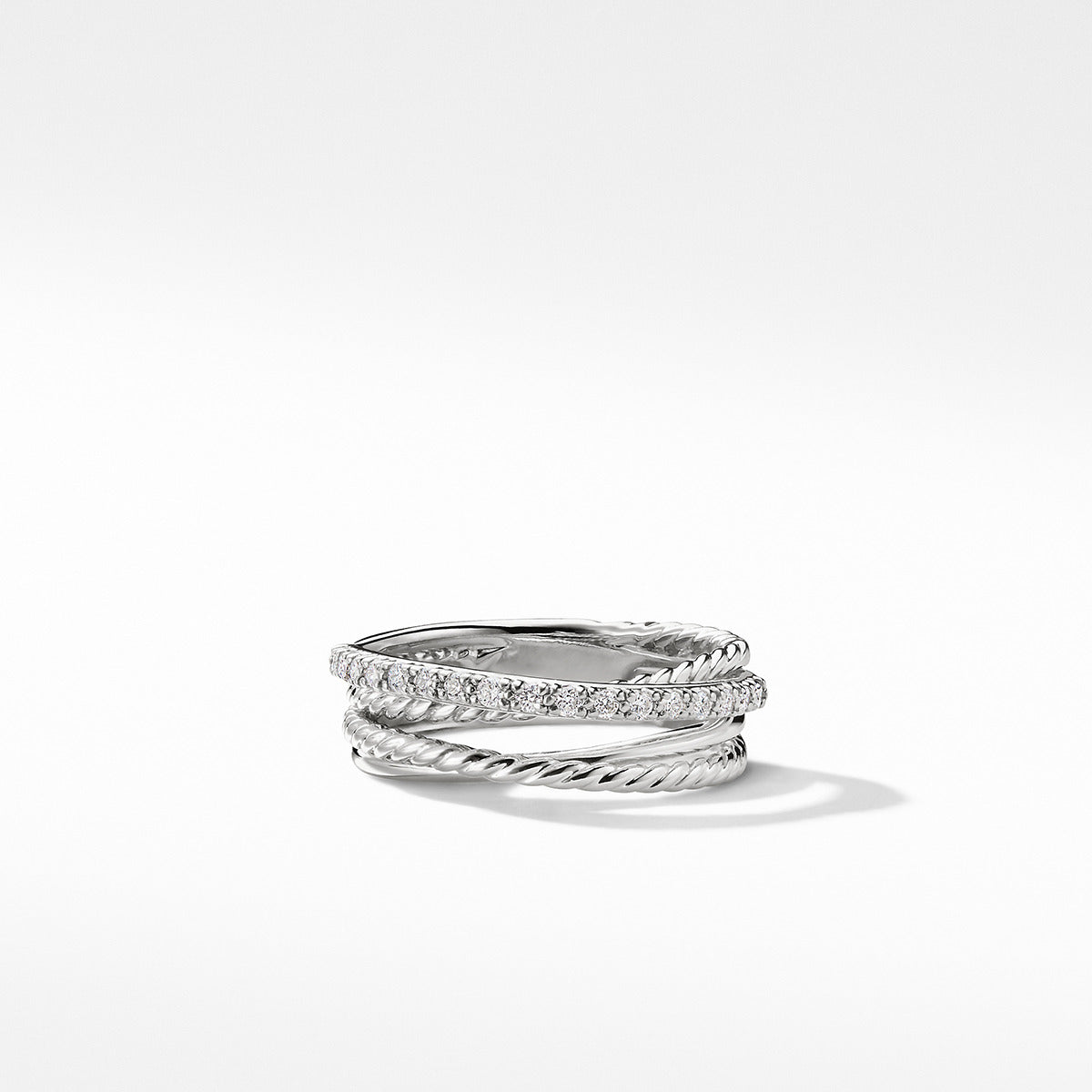 Small Crossover Band Ring in Sterling Silver with Pave Diamonds