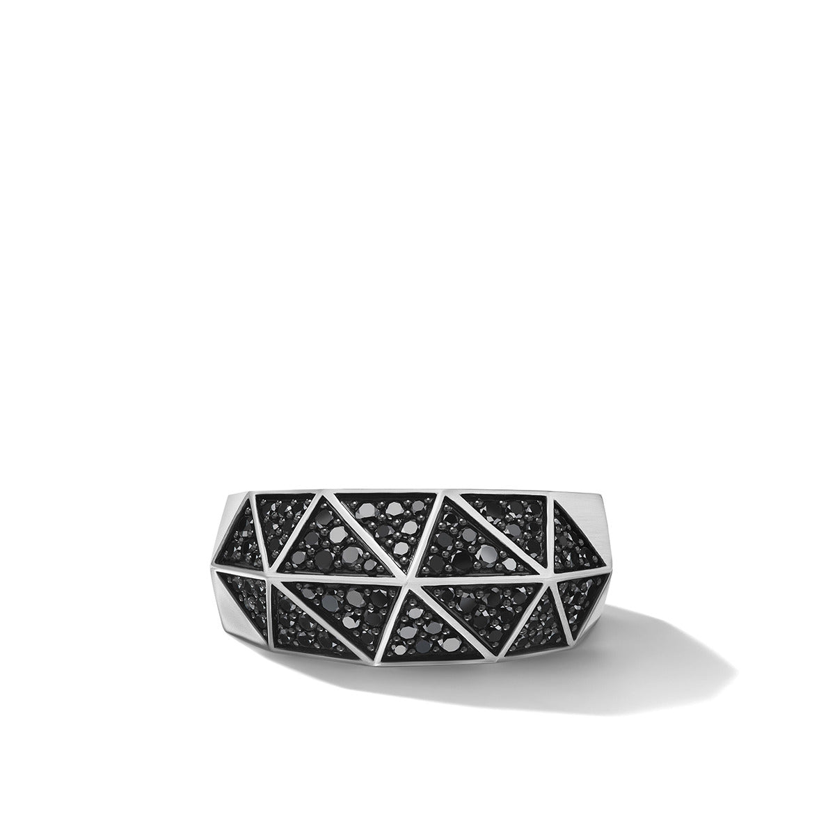 Torqued Faceted Signet Ring in Sterling Silver with Pave Black Diamonds