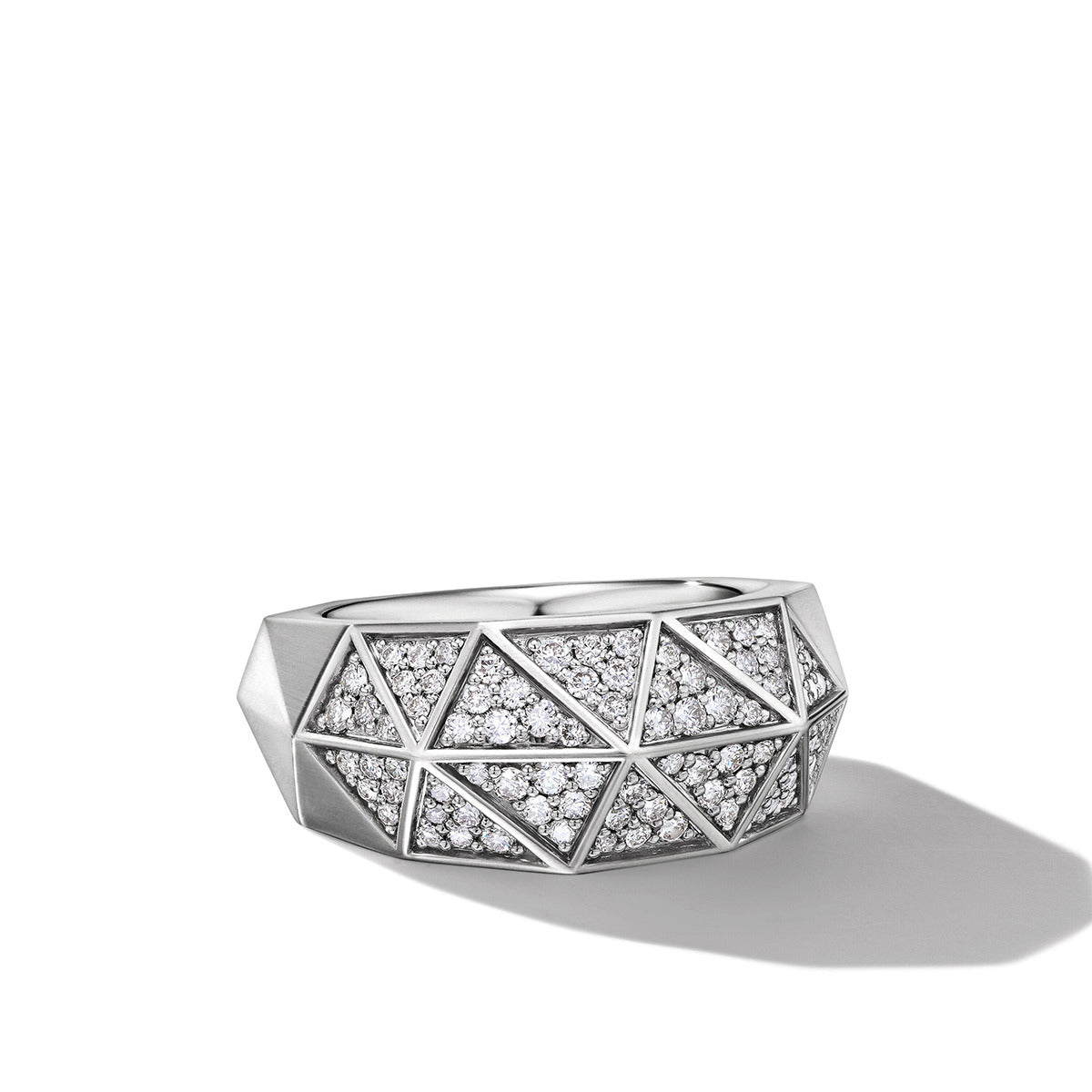 Torqued Faceted Signet Ring in Sterling Silver with Pave Diamonds