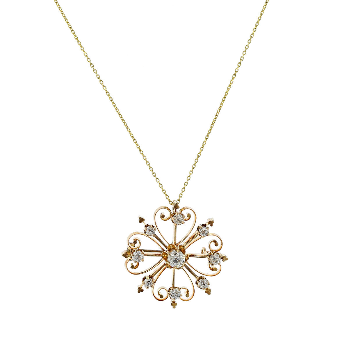 Victorian 14K Yellow Gold Diamond Pendant Necklace